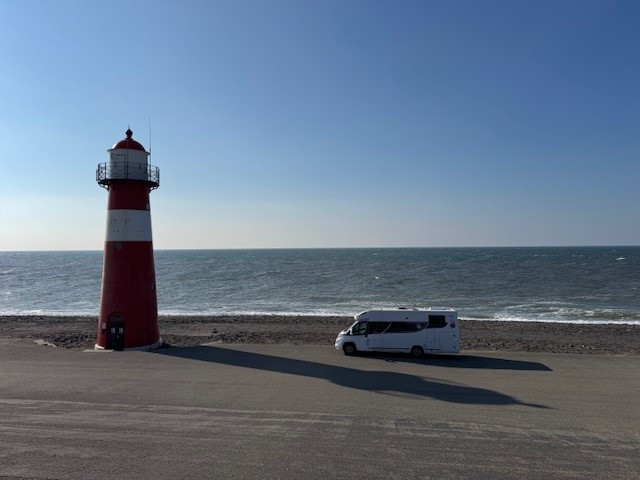 Am nächsten Morgen geht es nach dem Frühstück Richtung Westkapelle. Dort steht ein schöner Leuchtturm direkt am Meer und man kann direkt davor parken. Herrliche Aussicht auf das Meer. Aber auch hier ist es saukalt und stürmisch. Ich traue mich nur kurz aus dem Wohnmobil um mal eben bis zum Meer zu laufen.